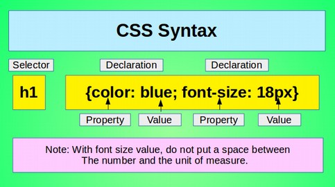 To visual learners, a picture really is worth a thousand words! You will therefore find an average of 10 or more images on every web page and a total of more than 600 images in the complete course! All of our images have been carefully designed to help you better understand how HTML and CSS coding work together to structure and display your web pages. Here is just one of these many instructional images. This one demonstrates how to write a CSS selector declaration for a large blue h1 heading element: