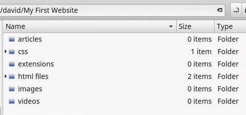 The first step in building any website is to create the website root folder. Open Your File Manager and create a folder called My First Website. Create folders in your Root folder for your website articles, css, extensions, html_files, images and videos. Your Root folder will look like the following.